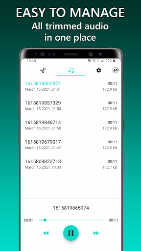 Whether you want to trim music or conversation, it can easily be trimmed with Audio Trimmer: Music, Ringtone, Song & MP3 Cutter.
