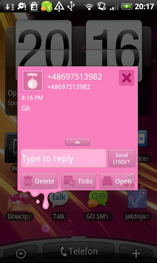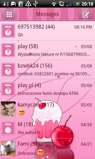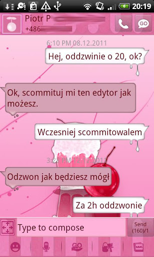 A Sweet Cherry Milk Shake theme designed for GO SMS PRO.Sweet Cherry Milk Shake for GO SMS Pro is available nowImportant:1. This is not a standalone app, you need to download the LATEST version of GO SMS Pro app in order to apply this theme. search GO SMS Pro to download2. To apply the theme within GO SMS Pro, download it from Menugt;Themeor Plugin UIgt;Theme shop After downloaded, it will displayed in quot;Installed Themequot; Tab, click and apply it.tags GO SMS PRO, GOSMS Pro, milk shake theme, sweet, cherry