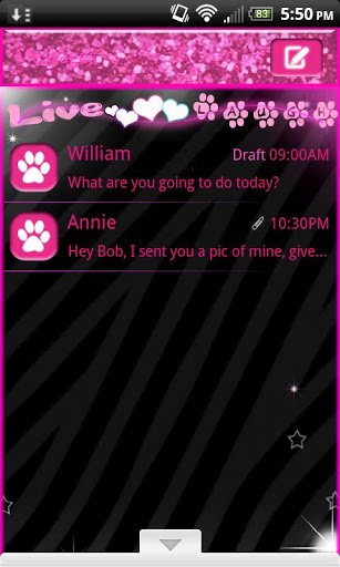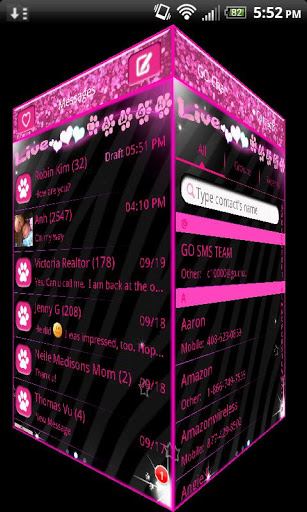 WFREE THEME ALSO REQUIRES THE TOPRATED quot;GO SMS PRO FREEquot; APPLICATION.FOLLOW THESE 3 EZ STEPS1DOWNLOAD THEME.2DOWNLOAD FREE quot;GO SMS PROquot; HERE.3OPEN quot;GO SMS PROquot; HIT MENUTHEMEINSTALLEDTHIS THEMEAPPLYCLICK BACK.THEME39;S NOW CHANGEDNeed HELP? Please send an email to ten.designer@gmail comNOTICE: XO NEW Themes now all come with everything including EXTRA 12 fonts pack http:xothemes.blogspot.compgosmsinstructions.htmlquot;gt;CLICK HERE for quot;THEMEamp;FONTS INSTALL INSTRUCTIONSquot; Want a different FREE theme? No Problem CLICK HERE for our 75 FREE THEMES... CLICK HERE for our 150 THEMES...NEW SERIES:5 or more themes in each CLICK HERE for quot;GO SMS PRO Zebra Love Themes Seriesquot; CLICK HERE for quot;GO SMS Pink Diamond Themes Seriesquot; CLICK HERE for quot;GO SMS Theme Cool iPhone Seriesquot; ABOUT XO STUDIO 1 New Themes DAILY, follow us http:www.twitter.com@xostudio2 Click on More by Developer in this page to see more themes3 Visit http:xothemes.blogspot.comCheck out our new affiliate themes: search google PLAY STORE:EYE4THEMES ABOUT THEME Zebra Love Theme 5 for Free GO SMS PRO application is now FREE. This is beautifully designed for wild animal print lovers. Instructions are below.Testimony:Testimony on my WB Zebra theme similar to this oneSherrie August 1, 2012 Motorola Droid II Go SMS pink@black zebraThis developer is awesome have awesome themes I have several they work great better than most paid ones of other developers. 5 starsMore Free themes amp; updates @ http:xothemes.blogspot.comMore FREE New amp; Awesome Theme:Search: XOThemes DESCRIPTION TITLE: GO SMS PRO Zebra Love Theme 5 Black White Stripe and HeartsDo you like FREE Zebra print, wild animal print, butterfly or monkey theme for your Go SMS PRO or GO Launcher EX? Maybe you want girly girlie things like pink, neon theme, stars, hearts, bubbles, paw prints, butterflies, sparkles and glitters? Then you will love this theme features. We blend colors from gradient of blue to purple with highlights of light pink, and bright pink colors with highlight of black white gray to make beautiful designs for you.FEATURES: Superbly beautiful, cute and cuddly styled with tons of customization options. XO unique custom design stunning wallpapers and clean, beautiful icons Fantastic highresolution HD main background with custom soft Color Zebra Stripes frame, designed by XO Studio from the scratch. Custom Zebra popup message with custom matching colors and icons, scroll vertical or horizontal as well. 100 themed out message main background, textingchat interface, GO chatContacts and app. Center Designed for wide range of Google Android O.S from 2.2 to 4.0 ICS. Designed for latest GO SMS PRO 4.x.Sincerely,XOThemesDisclaimer: To support making of our themes, this free version periodically presents AirpushLeadbolt advertisements in your notification bar andor icons. The permissions are for advertising.If you have issues with ads, search Google Play for an official airpush blocker and use our themes without any advertising.Another option is CLICK HERE TO BUY THE DONATE VERSION Absolutely NO Ads:http:goo.glkT7I4