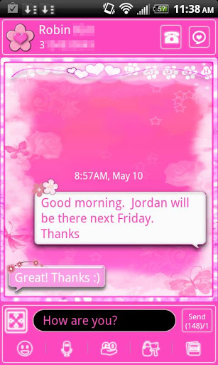 GO SMS PRO THEME CUTE PINK THEME FEATURES:.