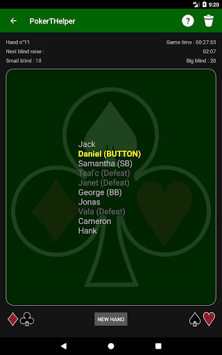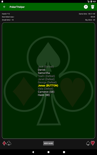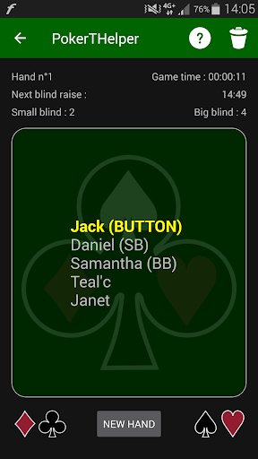 PokerTHelper & Timer is a Poker helper, timer and dealer that guides you for your Poker Texas hold'em games.