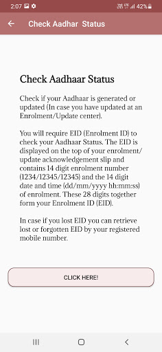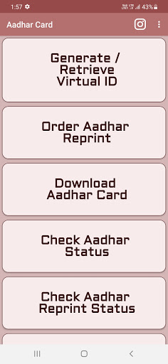In this app you can check Aadhar status , Aadhar card download and many more.