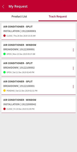 * Request & Track Service: Track a Service Request for repair / maintenance / Installation / Dismantling
