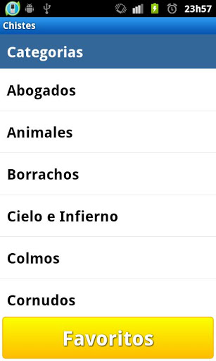 Categoría Favoritos. Navegación deslizando el dedo sobre la pantalla. Agitar el dispositivo para un chiste.