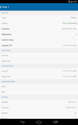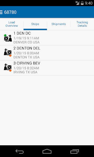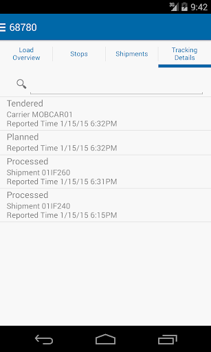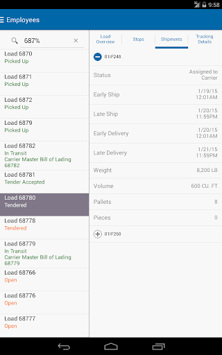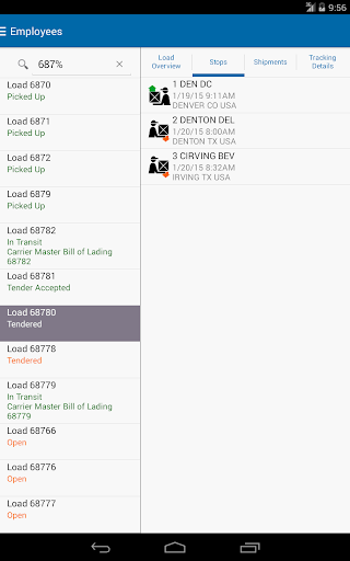 Internal transportation based personas can retrieve loads and analyze associated events, stops and shipment details within the mobile application.