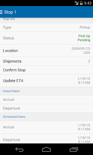 Carriers can review and respond to load tender requests. In addition, the solution allows real time stop based updates to be generated, including ETAs and stop confirmations,
