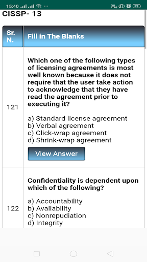 CISSP MCQ Application is based on Certified Information Systems Security Professional (CISSP).