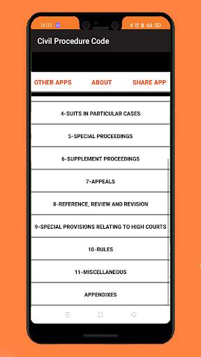 The Code is divided into two parts: the first part contains 158 sections and the second part contains the First Schedule, which has 51 Orders and Rules. The sections provide provisions related to general principles of jurisdiction whereas the Orders and Rules prescribe procedures and method that govern civil proceedings in India.