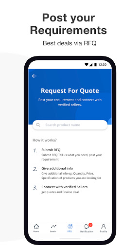 The app has a unique RFQ feature which stands for request for quote. This feature enables users to share product requests, whether a single unit or bulk quantity, directly via the app. Users can get in touch with various vendors and get the best deals for their requirements from them.