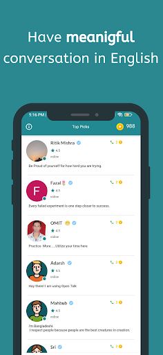 Open Talk is a Speaklar like an App that allows you to connect English Speaking partners over the globe. English is an international language, to improve in English speaking people need to make more conversation in English. So we offered a platform where users can find another interested person to talk to in English. People find it difficult to get another interested English speaker but using Speaklar like app Open Talk it is very easy to find partners.
