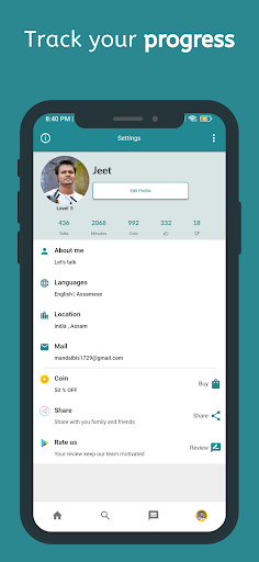 Have live audio chat with new people around the world to make new friends & practice English speaking.