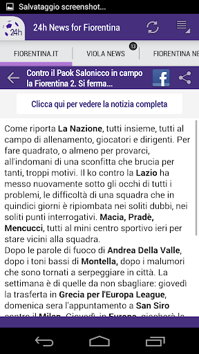 Simply the best! Fiorentina 24h mashes up news from newspapers and web portals in a single app!