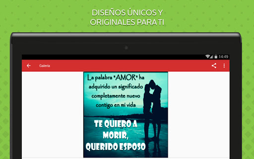Nuestra aplicación ha sido diseñada pensando en ti, por ello, podrás disfrutar de mensajes llenos de autenticidad, amor, cariño e ilusión, para que le demuestres a tu esposo cuanto le amas y le quieres.