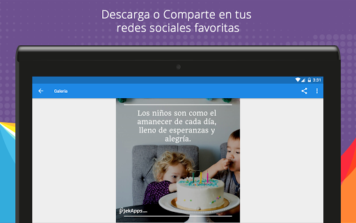 Esperamos que disfrutes al máximo el contenido de frases por el día del niño, nuestro aplicativo te ofrece variedad de frases y divertidas imágenes. no te olvides compartirlos con tus amigos en las redes sociales.