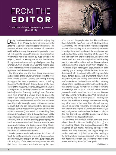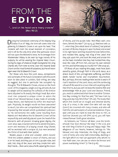 The imminent return of the Lord Jesus to the air to call the Church to Heaven, and His post-Tribulation return to the earth to establish His literal millennial Kingdom, are subjects upheld, and often referred to, in Believer’s Magazine.
