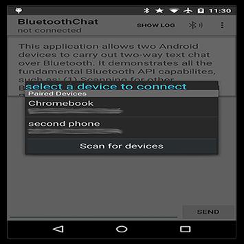 Chat via Bluetooth is an Android messenger application that connects two or more android devices via Bluetooth, where a user can chat with another user via Bluetooth connection between a server and an Android smart phone, whereby the user can upload and synchronize his/her chat records with server from time to time.