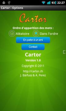 Cartor is the application that will allow you to quickly and easily learn vocabulary, history dates, capitals of the world, birthdates of artists, or any other pair of words !