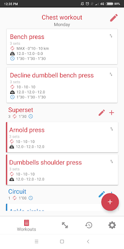Workout routines with Superset and Circuit support.