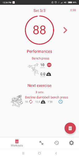 Possibility to see the next exercise to do during the workout.