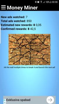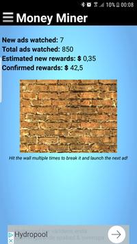 Hit the wall multiple times to break it, watch the video-ad and get rewarded. Your reward will, after a short time, be converted to real money that can be transfered to your paypal account!
