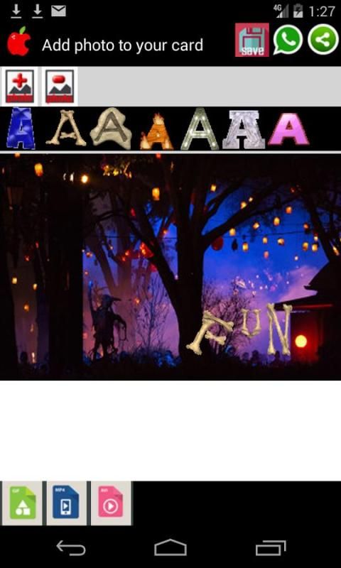 GIF Moving Word can be put into Photo of mobile, with different font, size and position. It can be saved in your gallery with short description of the photo with funny character to reflect your mood, like fire or ice.