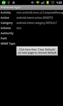 This app allows you to easily view all your preferred apps for various url patterns and mime types and provides quick linkage to clear the defaults. For example, if you download a second web browser and check the "Make default" box when clicking a link, you will never get asked again which browser you want to open when clicking links. When you find and clear the default you will again be able to select which browser you want to open and make it the default if you'd like.