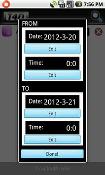 User Accounts and online synching! Hit the synch button and create a new account. Activate your account, enter the sign in information under T4D settings and synch your tracks online! Go to Tracks4Droid.com and sign in to manage your tracks online.