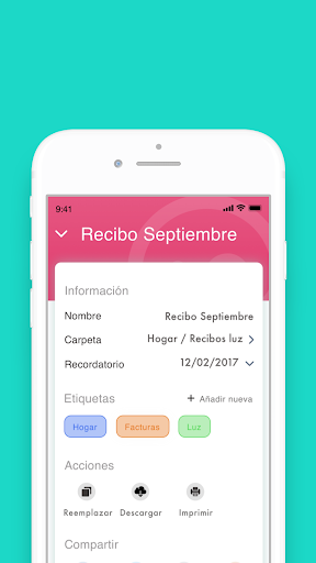 • Sube el documento a la aplicación y guárdalo en carpetas adaptadas a tu estilo de vida.