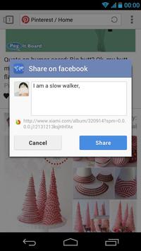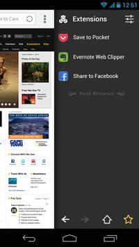 is a simple and useful browser plug-in, the main function is sharing the pages to your Facebook account that you want to share with your friends. After authorizing to Next Browser, you can share pages very easily and fast by just one tap. Thanks for using and we hope you will love it.