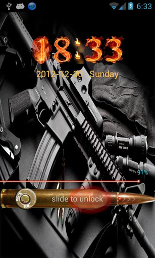As the government talks about taking away our assault rilfes maybe it's time for you to show your support any way you can by even putting them on your lockscreen with this simple right slide unlock theme This theme is a good way to show off your love for the Second Amendment*DO NOT OPEN FROM MARKET PLEASE APPLY THIS THEME VIA GO LOCKER OR IT WILL FORCE CLOSE**FEEL FREE TO email ME FOR COMPLAINTS AND TECH SUPPORT OR SUGGESTIONS***Please visit http://www.airpush.com/optout to stop receiving ads.To use this theme:1. Make sure GO Launcher EX V2.58 or above and GO Locker v1.0 have been installed;2. Click “MENU—->Preferences—->Theme Settings—->GO Locker---->My locker”to choose the theme;