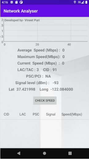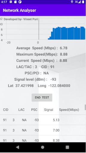 This app allows you to test download speeds,  map different RF parameters and location information against download speeds. This can be used by RF engineers and other mobile network engineers to understand the reasons behind any network issues. It can also be used if you just want to check download speed for your mobile network.  Following features are offered-
