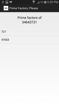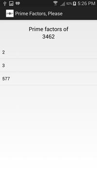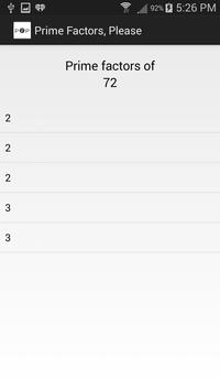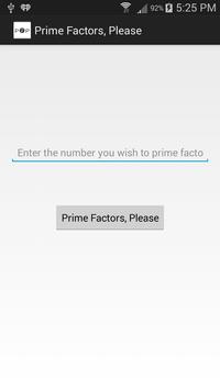 Finding prime factors just got alot easier with Prime Factors, Please. With Prime Factors, Please, just enter a number, tap a button and the prime factors of that number are listed.