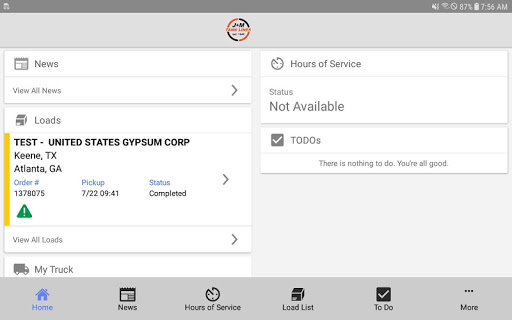 The purpose of the My J & M Mobile app is to help drivers be more successful in their day to day tasks by providing useful information to simplify their work and save valuable time. This app will bring many things together, but not limited to: view load and stop detail, view maps, send & receive messages, scan & send documents, view news and report safety issues. The goal of this app is to be another way we focus on driver support at J&M Tank Lines.