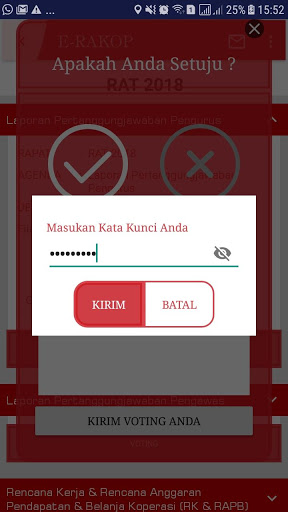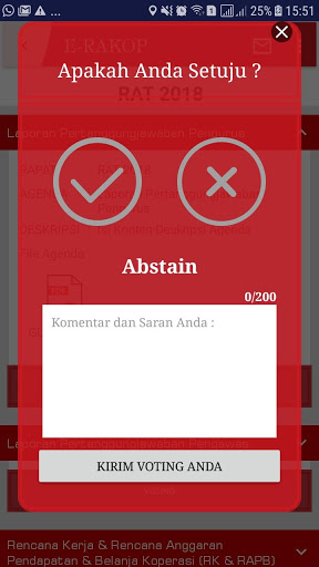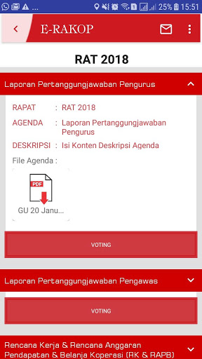 Aplikasi rapat berbasis elektronik, dimana pengguna dapat mengikuti rapat secara online. Pengguna dapat menerima undangan rapat, meilhat agenda, melakukan voting dan melihat hasil rapat.