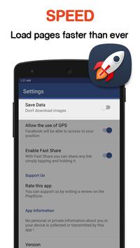 * Fast: Get your pageís load faster with this unofficial lite Facebook fast browser.