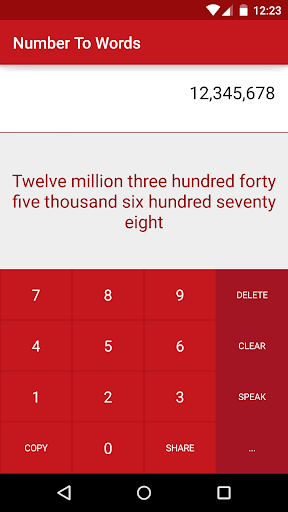 A simple app to * convert numbers easily to words * speaks it out * helpful for children to learn numbers quickly * helps children speak the numbers * copies to clipboard, and * can be shared easily