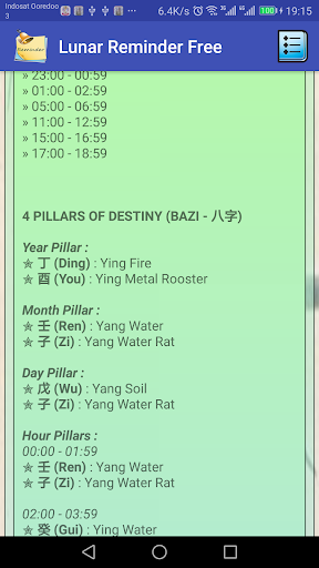 Information about 4 Pillars of Destiny (Earthly Branch - Earth Pillars - & Heavenly Stems - Heaven Pillars -) or also mostly known as BaZi (八字), The information of this 4 Pillars of Destiny will be served on every single selected date on the main calendar.