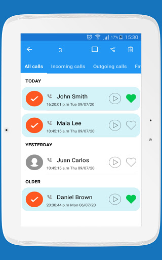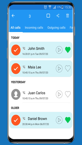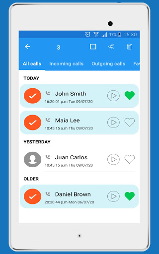 - Organize your call records. You can see calls as all calls records, only incoming, only outgoing, date and time easily.