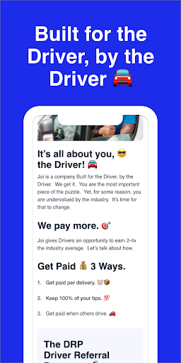 We pay more. Joi gives Drivers an opportunity to earn 2-4x the industry average.
