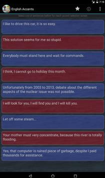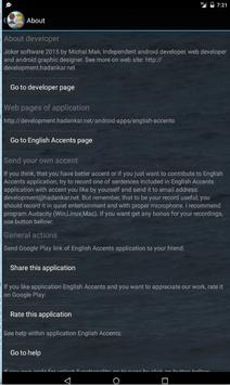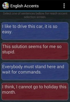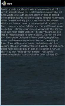 Do you know how sounds English language spoken by French, Indian, Chinese and else people. With this app you can enjoy so much fun with playing provided sentences with most specific accents of nations and ethics from the world. Application will be updated by new sentences, ethnics, nations in the future. Application Funny English Accents is not primarily focused on authenticity, but the mail goal is provide fun to users.