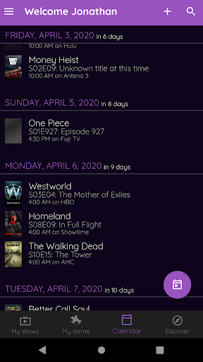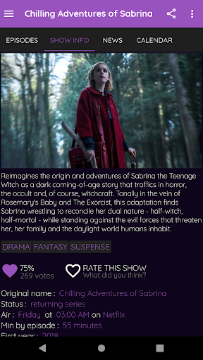 - Overview of all the upcoming episodes and those you didn't watch yet.