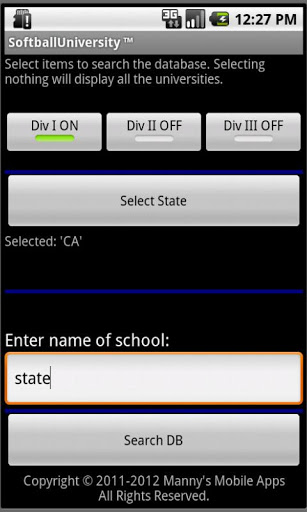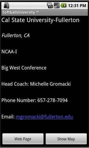 Want to play softball at the university level, then this app is right for you. Softball University will list universities per division and/or state. When a university is selected, a contact page is displayed. The contact page will contain Coach's phone number and email. It will also contain a link to the universities website and a location map.