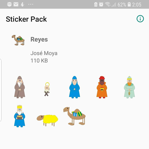 This is a set of Christmas stickers for messaging app. My pictures are not too nice, but they include the Three Kings (Magi), difficult to find in other sticker sets. These stickers work with the W messaging app only.