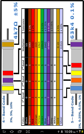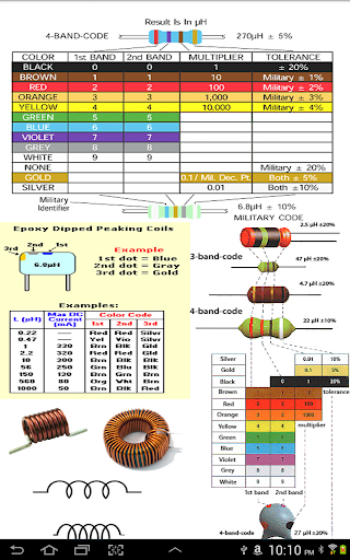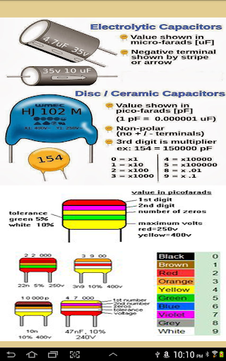 4- can access the table to calculate the value capacitors electrolytic and ceramic capacitors. It can perform calculations if the capacitors using the numeric format or color code.