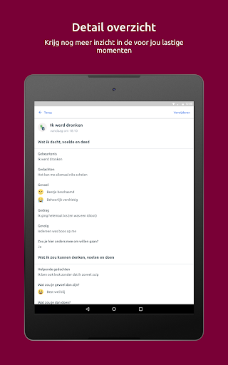 Werk je met Jouw Omgeving? Dan kun je er voor kiezen om alles wat je in de app invult daar ook in te zien. Vervolgens kun je er voor kiezen dit te delen met je behandelaar/begeleider.