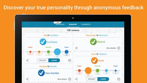TrueMe helps you know what truly people think of you PRIVATELY and ANONYMOUSLY.