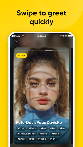 A: At Cheez, you can go live streaming and chat with your friends and fans. Share your lifestyle and support the people you like.