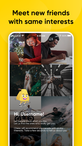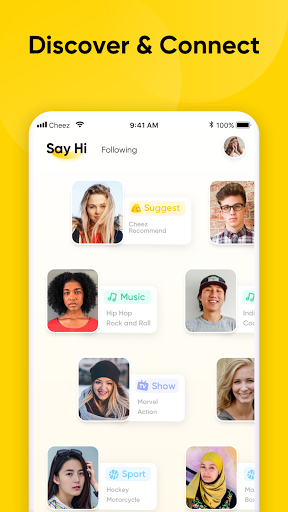 - With Interests tags you choose, Cheez would help you with building your own social network.