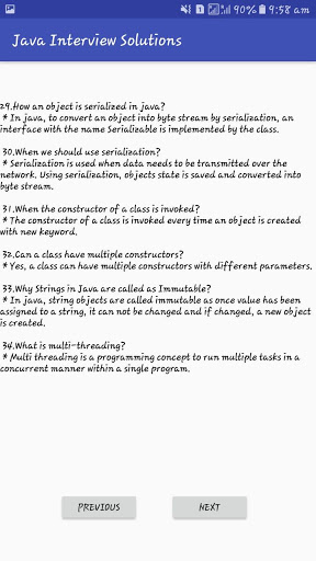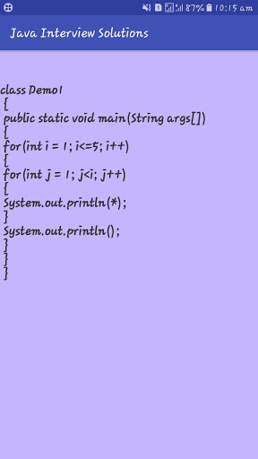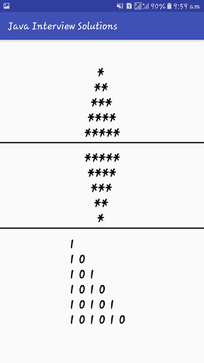 It is very helpful for fresher appearing for Java Technical Interview. This application also contains star, number pattern and important basic programs. All the answers in this application are clear and short.