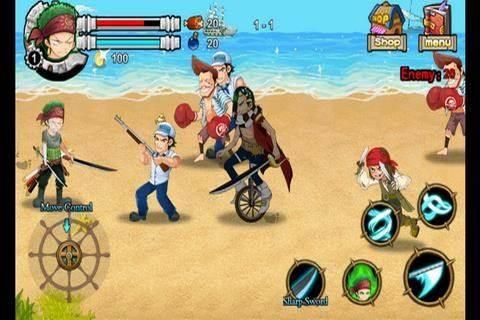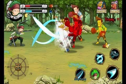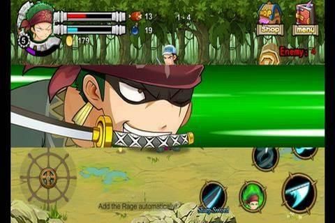 Three swords style master swordsman, Roronoa Zoro, whose dream is to become the greatest swordsman in the world. He team up with his private crew member to look for the one piece.He acquired a massive scar stretching from his left shoulder to his right hip during his loss against the world's greatest swordsman, Dracule Mihawk. After he lost the battle, He swear to his captin that he will never loss again. In the game, the player can control Zoro to challenge many Bosses, to release some sword techniques such as "three swords style-tornado", "Nine sords style-Asura". Player also can control haki techniques.